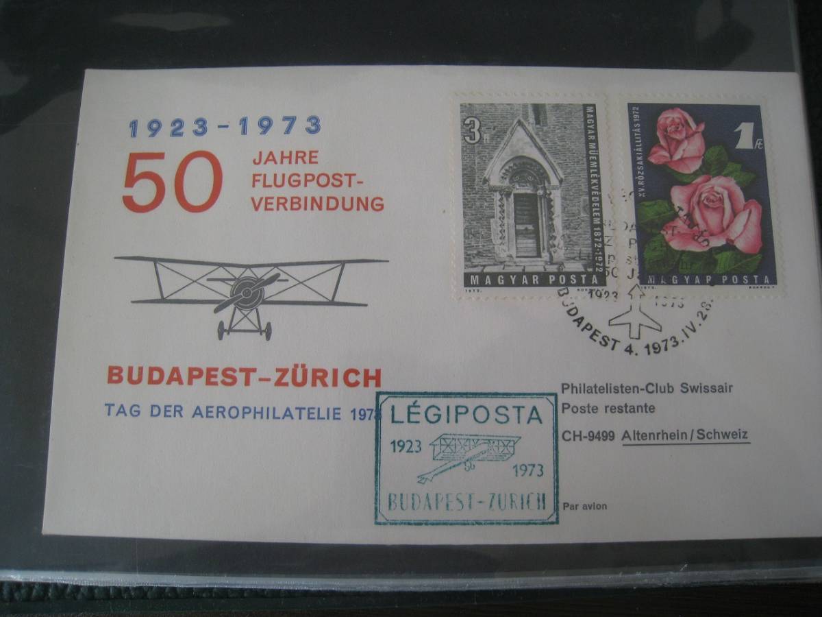 - ★F148 FDC/FFC初日カバー1973 スイス航空 ブダペスト - チューリッヒ - 航空郵便50周年