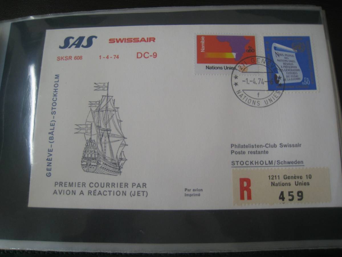 - ★F215 FDC/FFC初日カバー1974 スイス航空/スカンジナビア航空 DC-9 ジュネーブ - ストックホルム -