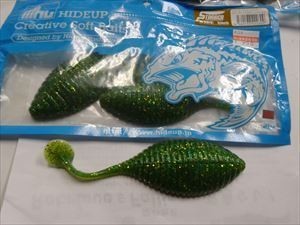 - ハイドアップ【即決あり】スタッガーワイド 5インチ チャートグリーン/ゴールドF3本 スイムベイト 未使用E4