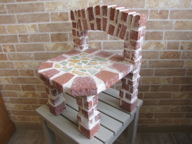 - レンガ 漆喰 手造り ガーデンアイテム プロヴァンス 花台 ブリックレンガ フラワーチェア 子供椅子