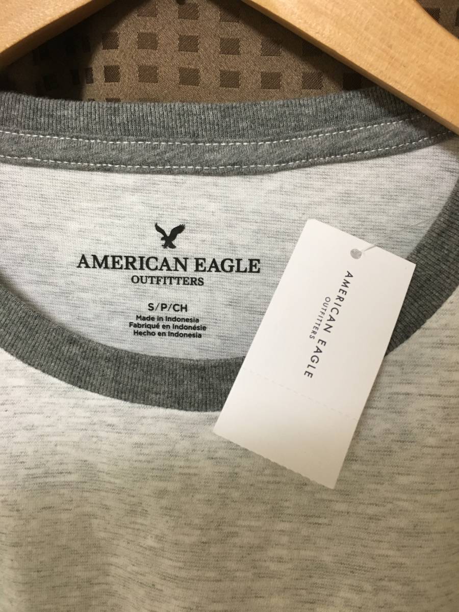 > セール! 正規品 本物 新品 アメリカンイーグル 着心地抜群 綿100% Tシャツ AMERICAN EAGLE 上品 爽やか シルエット綺麗 グレー系 XS ( S