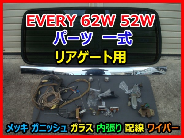 - SUZUKI EVERY DA62W DA52W エブリイワゴン 純正リアゲート バックドア用 パーツ一式 メッキ ガニッシュ ガラス 内張り 配線 ワイパー 即決