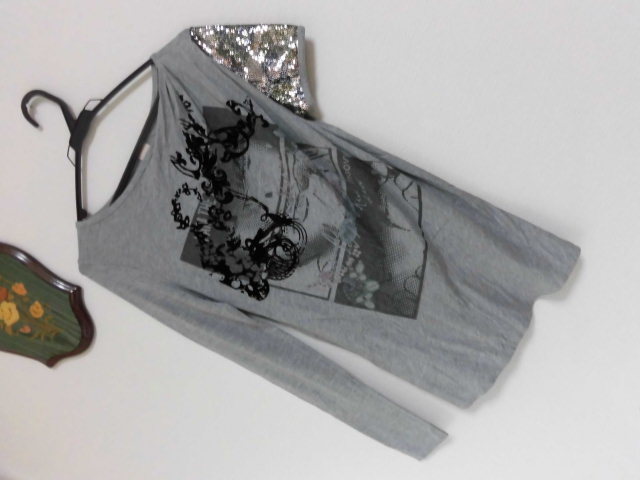 - ◆moovy/イタリー製/レアデザイン/左右非対称の遊び/カットソーシャツ/銀ラメの輝き/サイズM