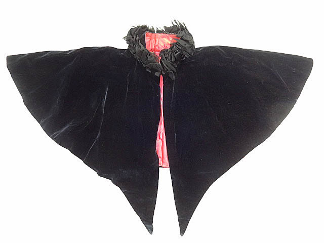 > ビンテージ アンティーク 希少 1800年代 ヴィクトリアン 黒 ブラック ベロア ケープ ショール マント ベルベット レース フリル 装飾 レア