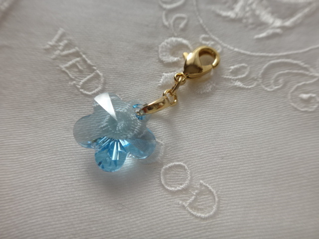 - 送料無料♪スワロフスキー♪チャーム♪フラワーお花♪ストラップにも♪水色♪12ミリ♪87