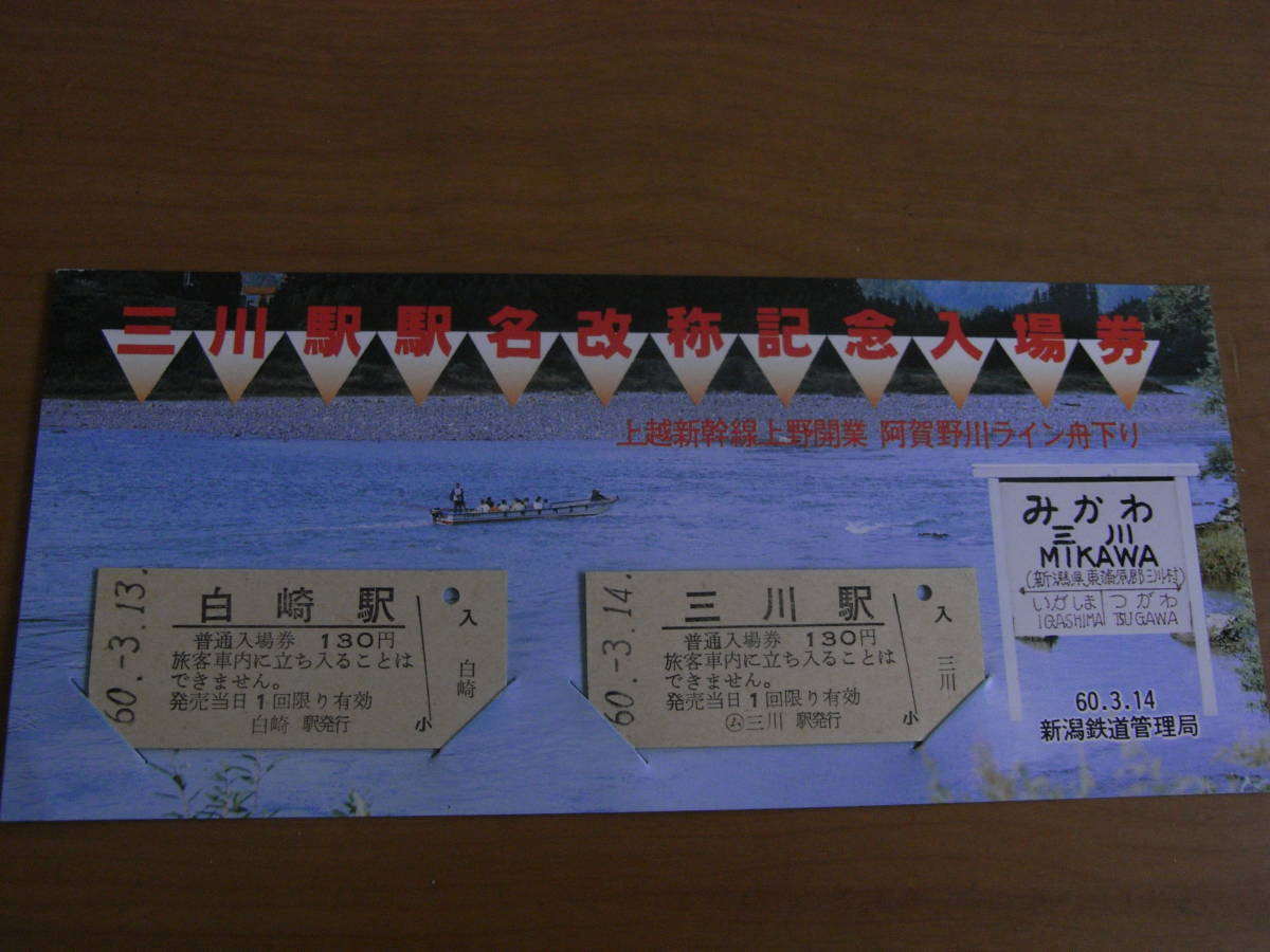 - 国鉄磐越西線 三川駅駅名改称記念入場券 昭和60年3月14日 新潟鉄道管理局 ●白崎駅最終日日付・三川駅初日日付硬券入場券
