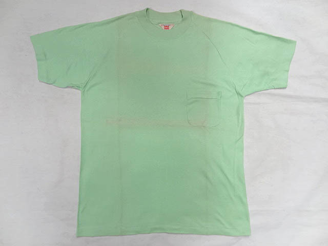 - ビンテージ HANES ヘインズ 希少 50S 60S スエード ニット タグ レア カラー 黄緑 グリーン Tシャツ 無地 クルーネック レア 雰囲気 アジ