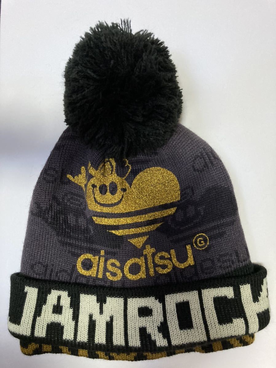 - 試着のみ JAM 派手かわ ニット帽 / L グレー ブラック ゴールド ポンポン付 防寒 子供 キッズ ママ 大人も♪