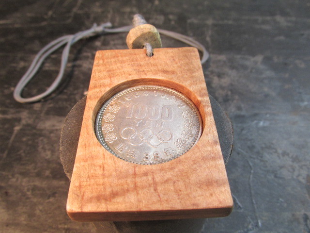 - 楓ちぢみ杢拭き漆昭和39年1964年東京オリンピック千円銀貨ペンダント 記念硬貨ペンダント