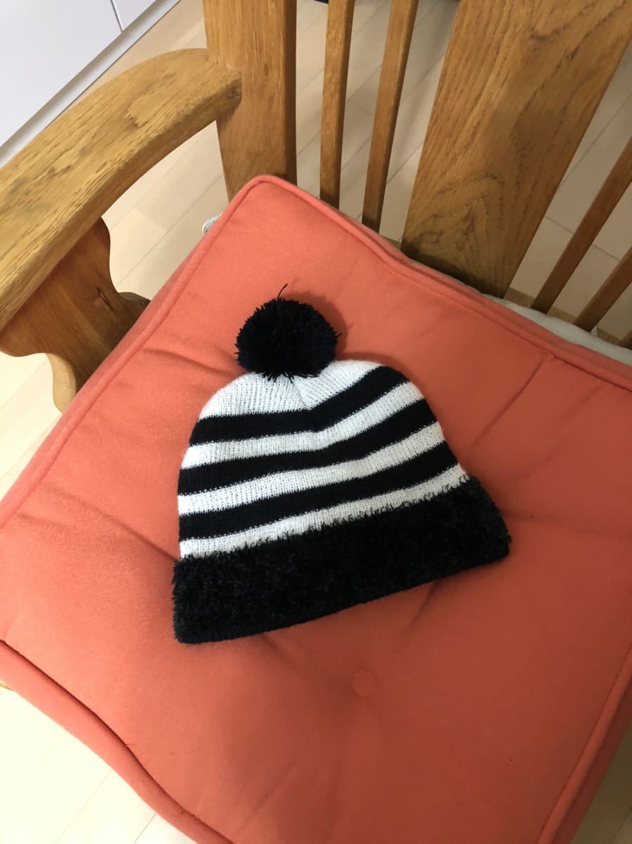 - ニット帽 白黒ボーダー フリーサイズ 未使用