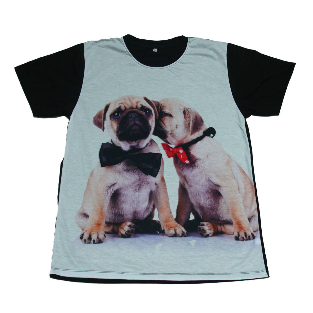 > パグ ペット アニマル 蝶ネクタイ 可愛い 犬 カップル ドッグ インスタ ストリート系 おもしろTシャツ メンズ 半袖★tsr0136-blk-xl