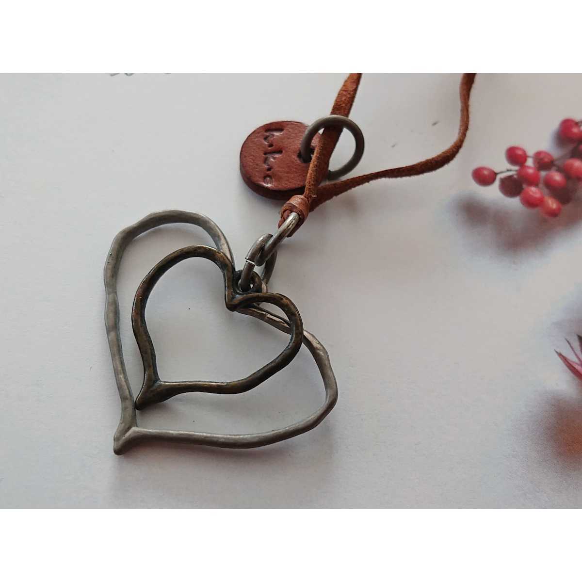 - □訳あり□h.k.c□ハンドメイド風Wハートのロングペンダント□