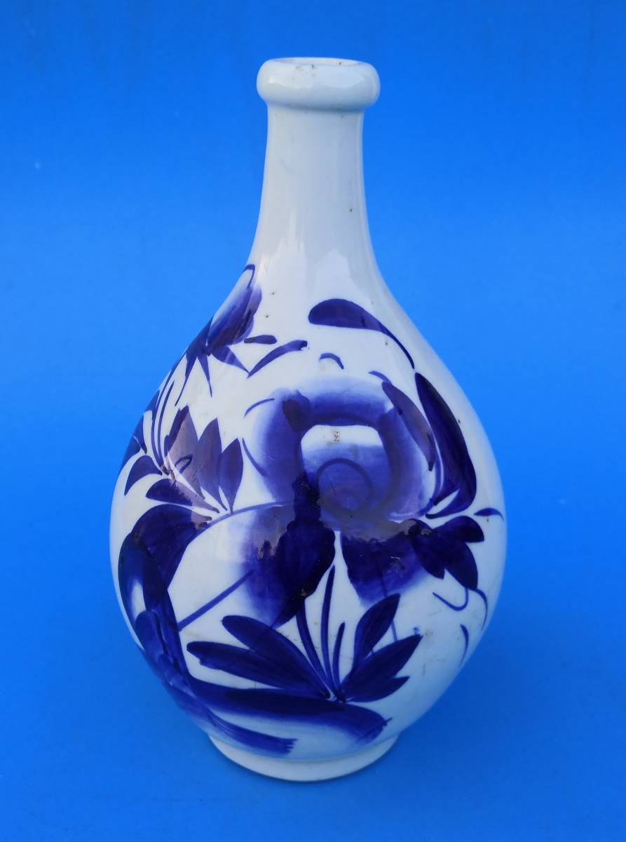- 2古い染付陶器の酒瓶昔の物と思います酒などを入れた物 花瓶 花入れ に如何ですか