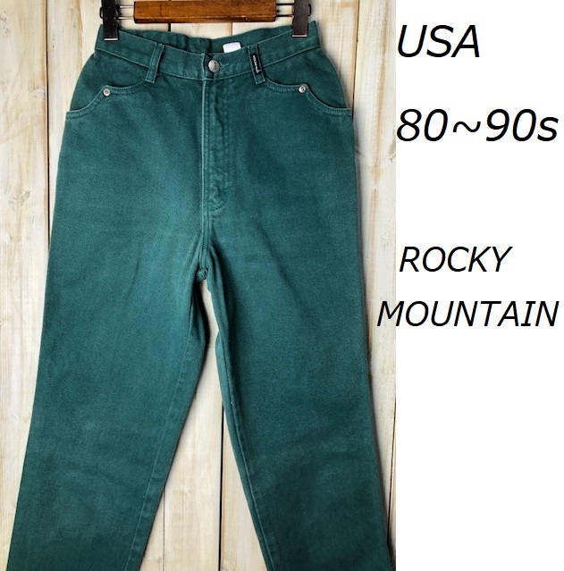 > USA古着 80s~90s デザインカラーデニムパンツ 緑 28/7 ROCKY MOUNTAIN オールド ヴィンテージ ユニセックス ワイドテーパード ●16