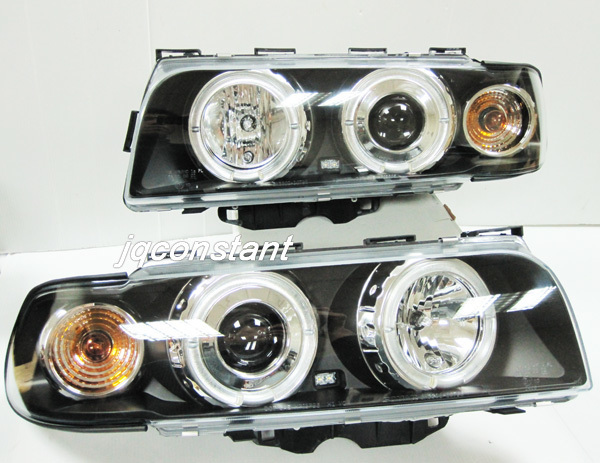 > 1995-1997y BMW E38 LEDイカリング 前期用 プロジェクターヘッドライト ブラック