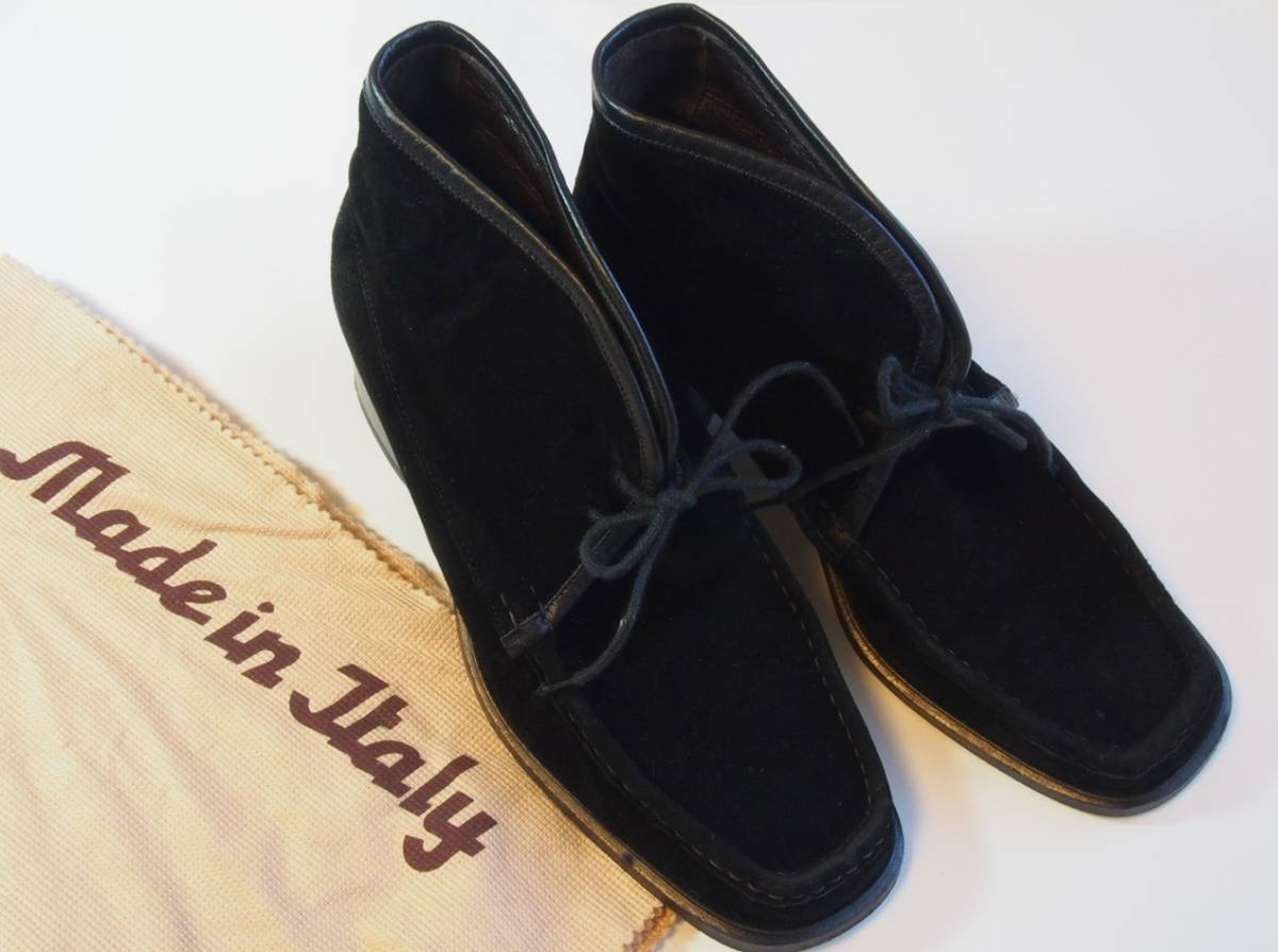 > 定価5万★ユナイテッドアローズ購入★イタリア製スウェード牛革ショートブーツ黒スクエア24-24.5ヴィンテージ37デザートブーツJ.M.WESTON