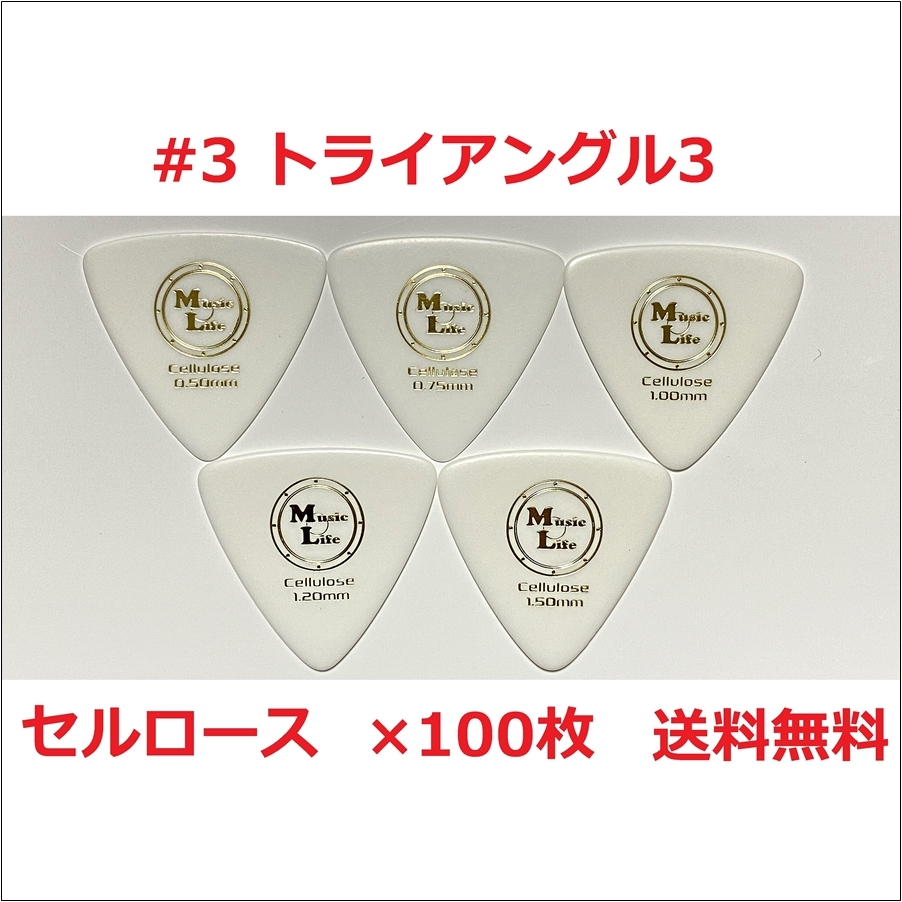 > 【1.20mm×100枚】MLピック #3 トライアングル3 Celllose(セルロース)オニギリピック 三角形【送料無料】