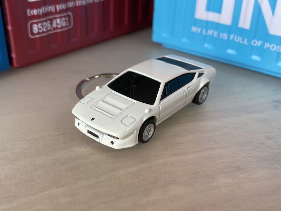 > 訳あり●◎ランボルギーニ ウラッコラリー 白 ミニキーホルダー①●オリジナル加工品 カーアクセサリー ミニカー ハンドメイド Lamborghini