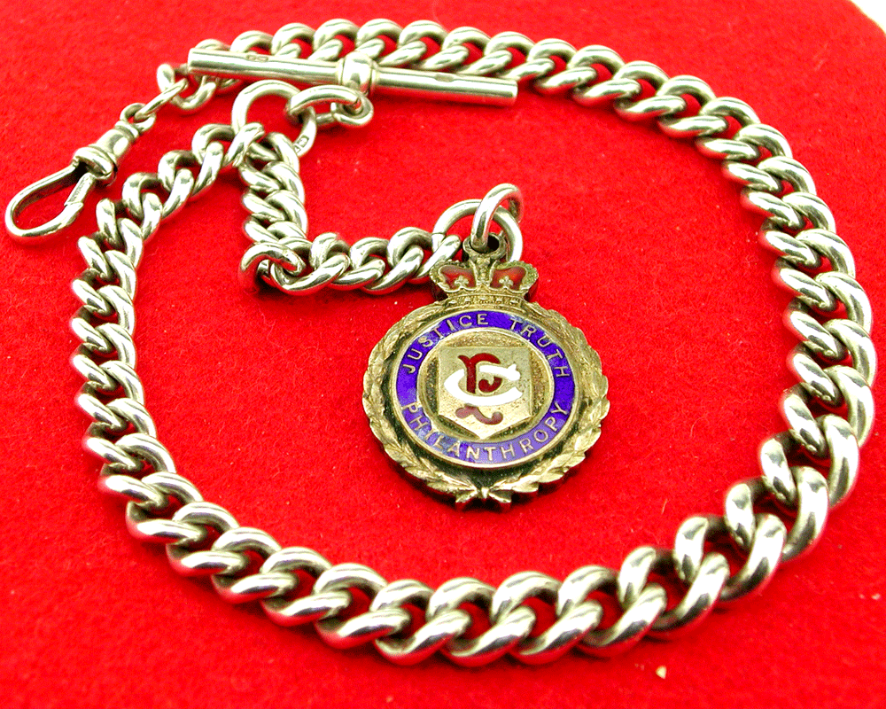 - ◎古◎★極上★極太★銀無垢★太さ変更★192~30年頃★エナメル装飾フォブ付★約95.7g★懐中時計用チェーン