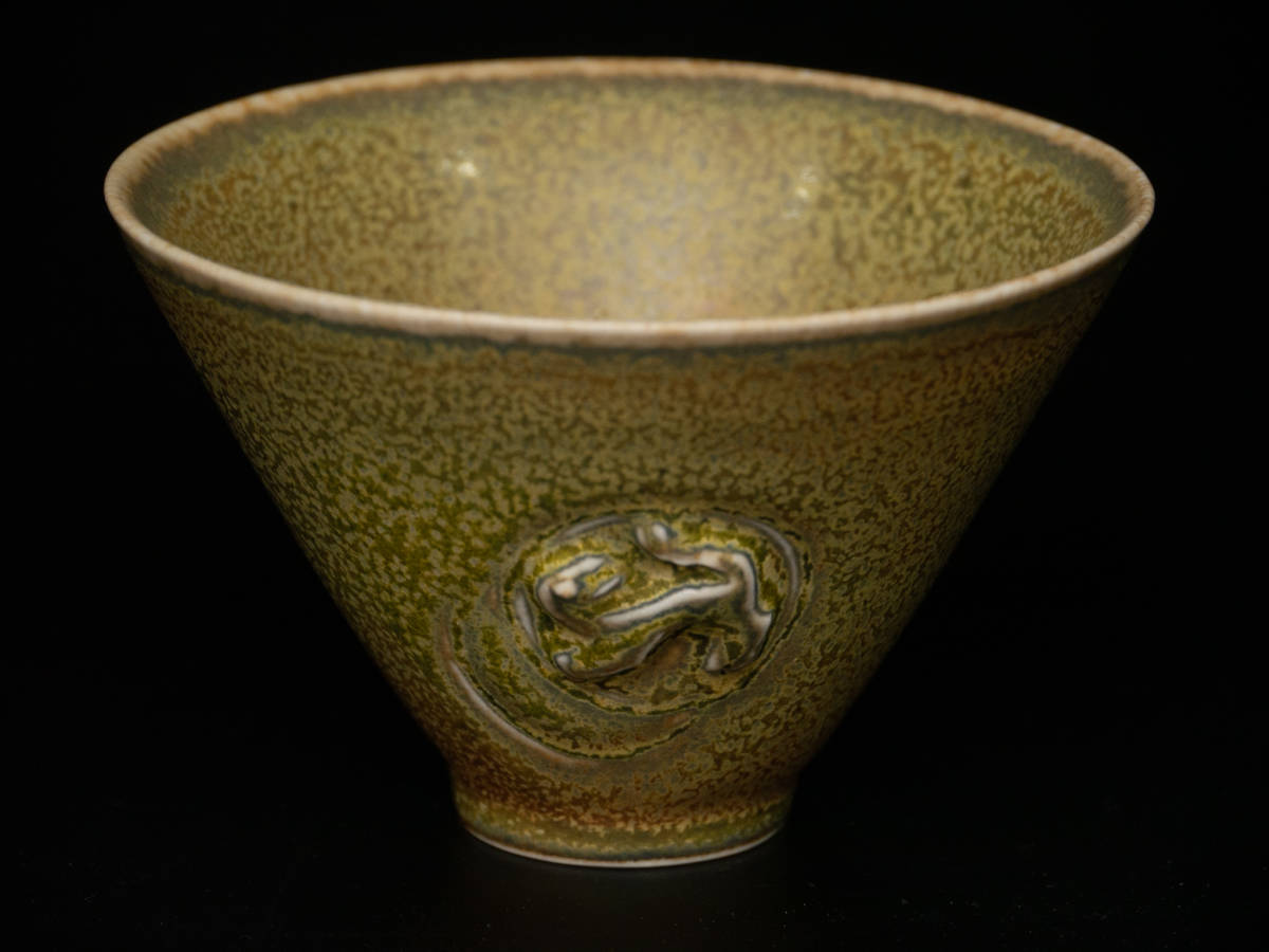 > 【値下げ交渉有り】 希少珍品 アンティーク ロイヤルコペンハーゲン ヤイス ニールセン 造 桃花紅写 陽刻 動物文 天目茶碗 合木箱付