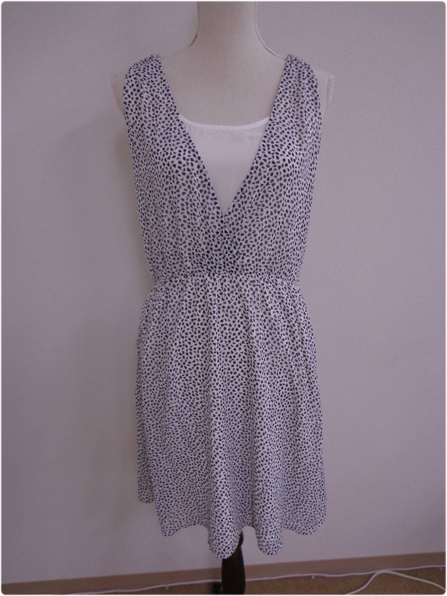 > ◎866【新品タグ付 送料無料】H&M ノースリーブ カシュクールシフォンワンピース US12 L相当 レオパード風 背中開き ウエストゴム 薄手