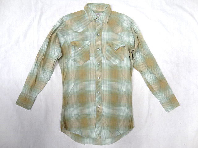- ビンテージ H BAR C 60S 70S グリーン ブラウン シャドー チェック 総柄 ウエスタン シャツ スナップ ボタン オンブレ 緑 茶 2トーン レア