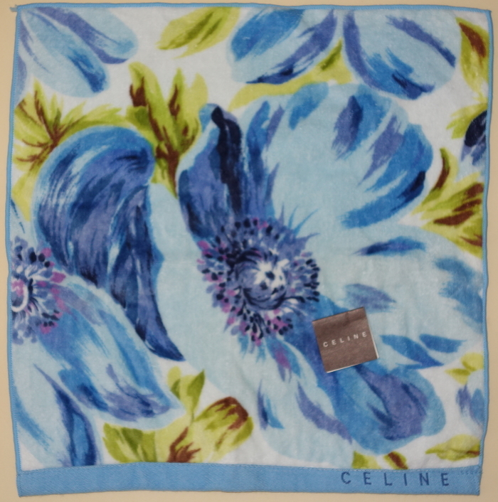 - CELINE/セリーヌ★タオルハンカチ★花柄★「CELINE」ロゴ刺繍★ブルー★日本製