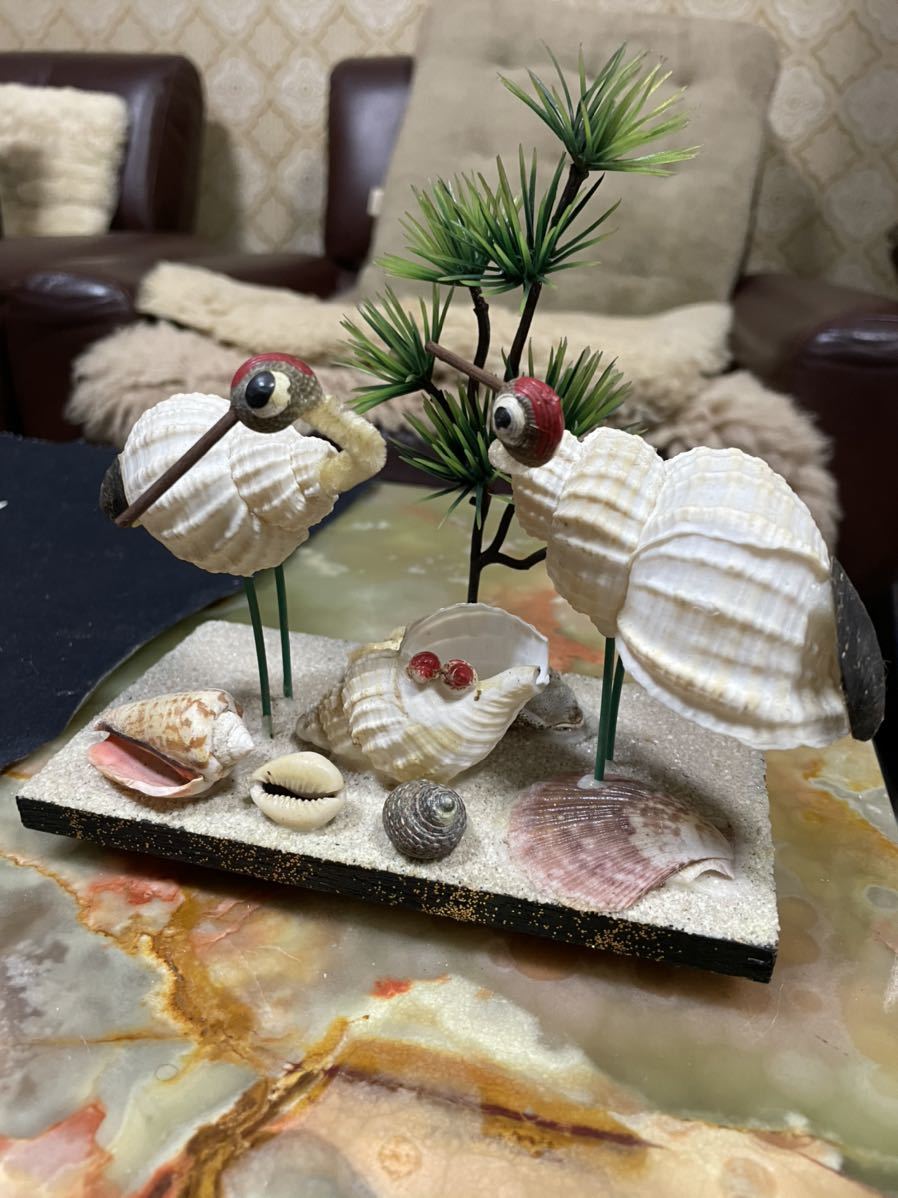 - 鶴松 貝殻アート 置物玄関リビングインテリアコレクション 昭和レトロ土産