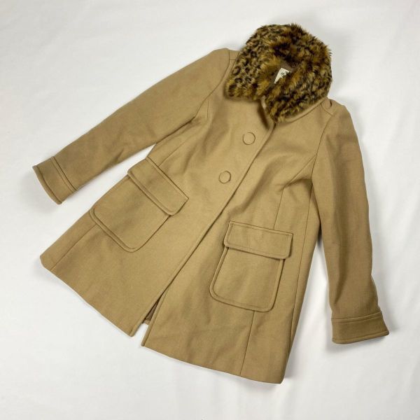 > 美品 Quality Clothes クオリティ クローゼス コート ブラウン 茶色 レディース ファー レオパード 長袖 サイズ0 *a68