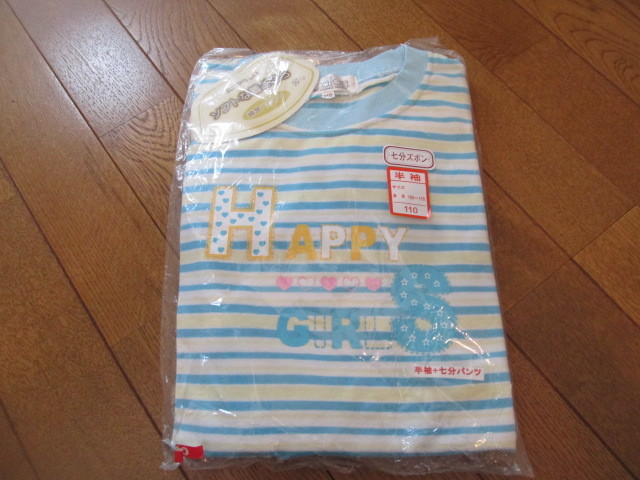 - 110 新品未使用袋入りタグ付き 半袖水色七分ズボンパジャマ