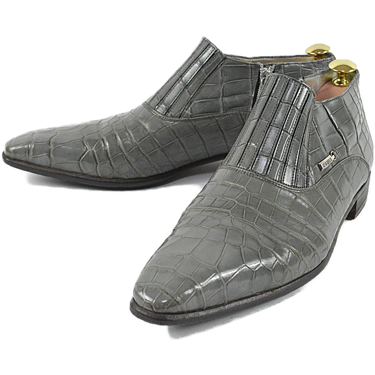 - ◆ジリー◆超豪華 超高級 世界で最高の衣 究極の逸品 クロコダイル アリゲーター サイドジップ エレガント グレー メンズブーツ ZILLI