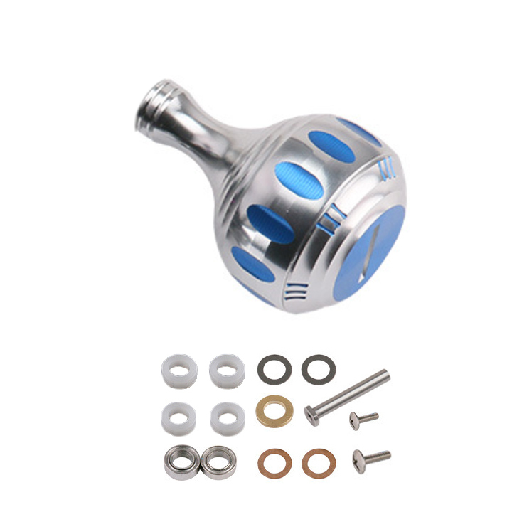 - リールハンドルノブ シルバーブルー 35mm アルミニウム製 Daiwa typeS Shimano typeA リールパーツ 釣り ルアー