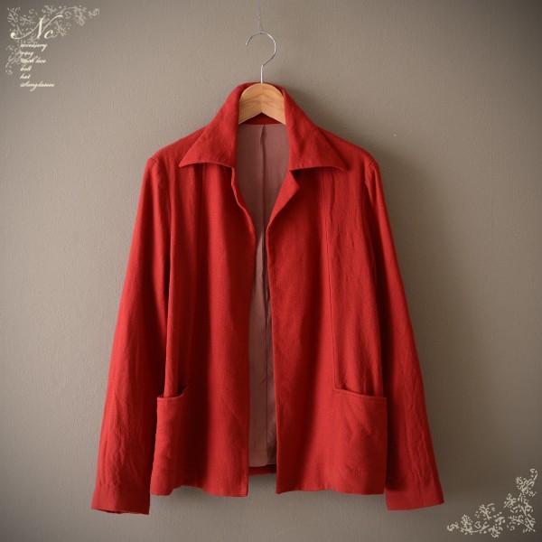 > 値下!USED*定価5万!Sybilla/シビラ/40/M相当/ウールニットジャケット/赤/レッド/ノーボタン/オールシーズン