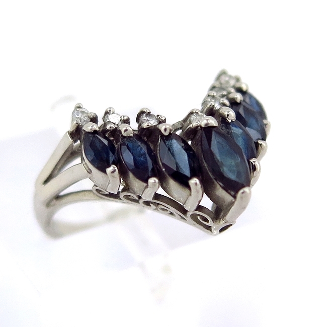 - Pt900 プラチナ リング 指輪 サファイア1.530ct ダイヤモンド0.100ct 13号 人気 Vデザイン ハート 普段使い 可愛い【中古】/10023226