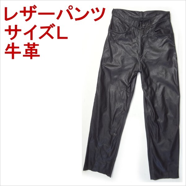 - アウトレット 牛革 ブラック レザーパンツ バイカー ライダース 牛皮 L メンズ