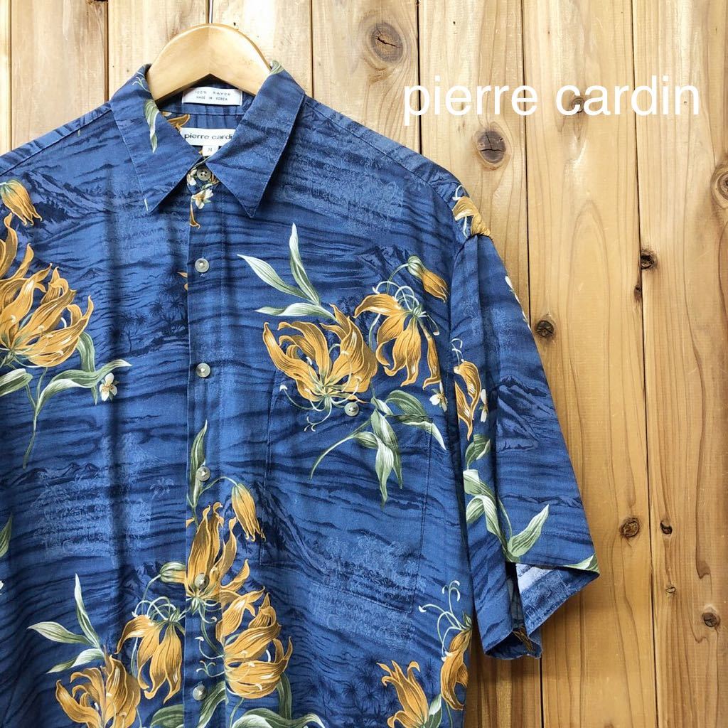 - pierre cardin/ピエールカルダン メンズ M アロハシャツ 涼感 レーヨンシャツ 半袖シャツ 花柄 ハワイアン 胸ポケ 柄合わせ USA古着
