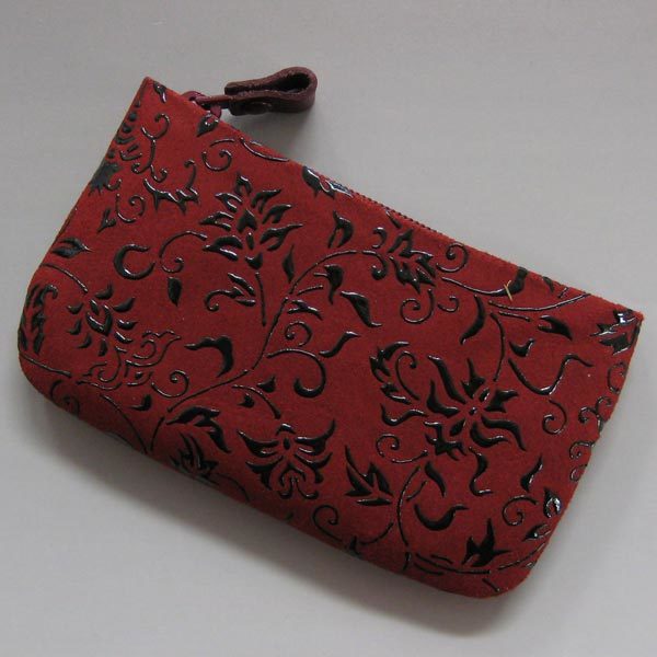 - 印伝財布 印傳屋上原勇七 INDEN-YA No.1003小銭入れ 041花唐草 赤地黒漆