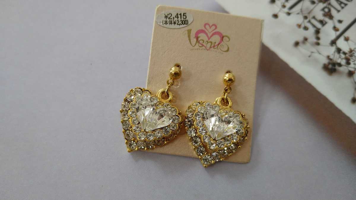 - □ゴールドカラー×ラインストーン・キラキラ揺れるハートピアス□定価2415円□