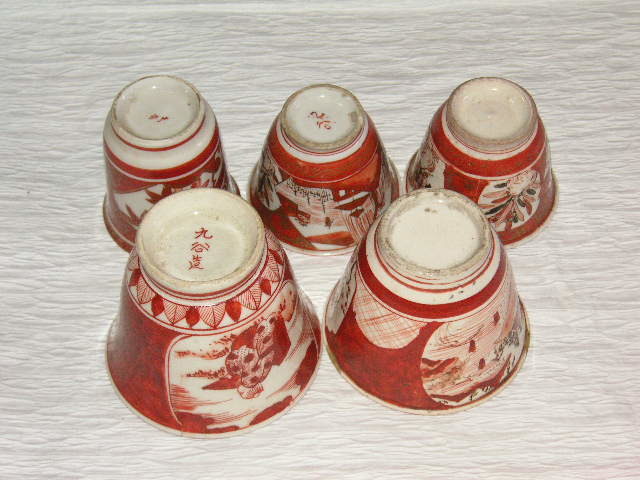 - 九谷 赤絵 いろいろな猪口 5客 ⑧