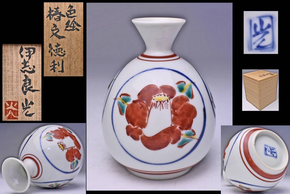 > 伊志良光 ★ 色絵 椿文 徳利 ★共箱 ★ 酒器 ★ 師:人間国宝 藤本能道 / 浅野陽 ★ コロッとした造形に可愛い絵付の逸品 ★