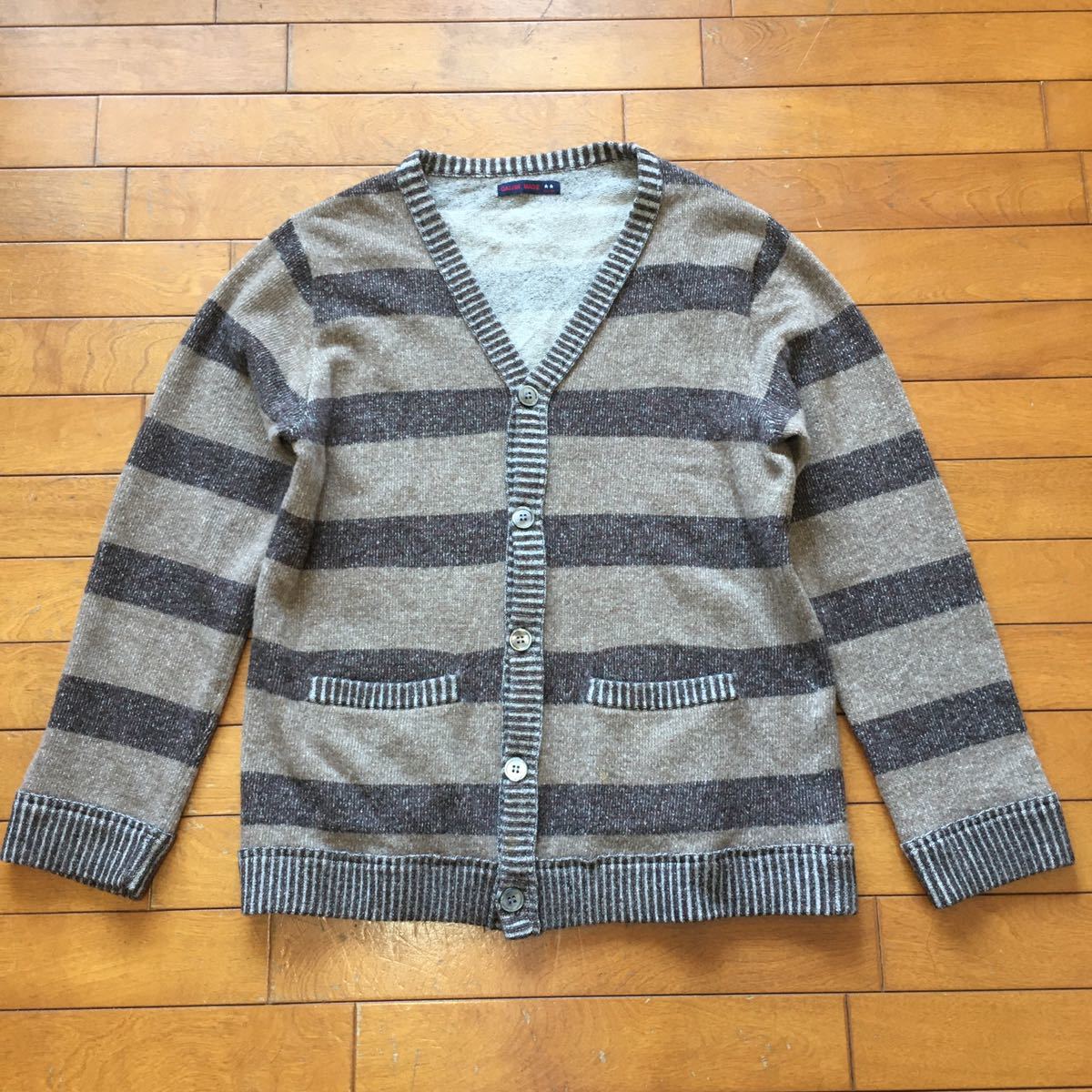 - ★【 GAIJIN MADE 】★ ウールボーダー Vネックカーディガン ★サイズM ★i-147