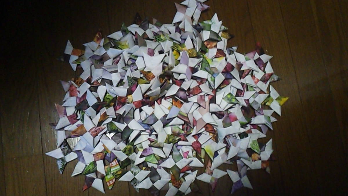 - ..ハンドメイド 折り紙 手裏剣 200点くらい チラシので折りました。 (b3横)