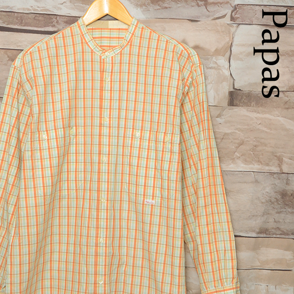 - KS4242 パパス PAPAS 長袖シャツ M 肩48 丸首 格子柄 メール xq
