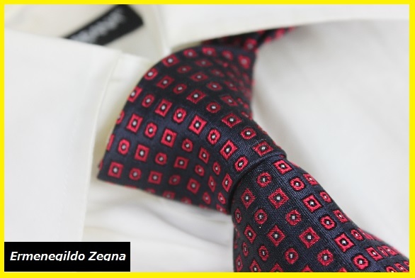 > 【送料無料】新品エルメネジルド・ゼニア(Ermenegildo Zegna) 100%シルクマクロデザイン柄ネクタイ タイ(紺:ネイビー×レッド)NO.74