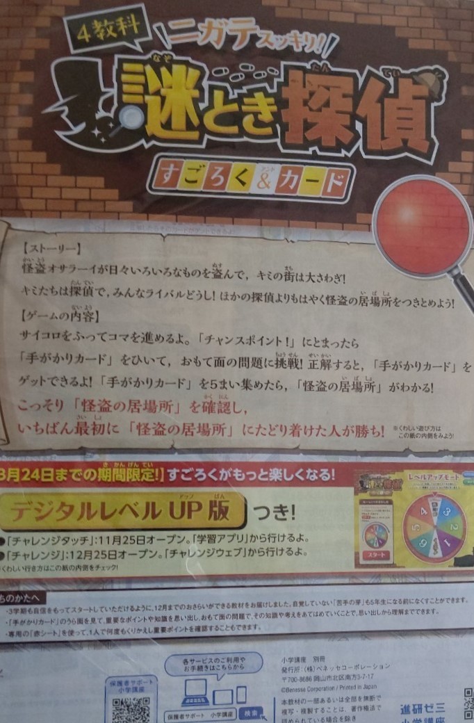 - 【進研ゼミ チャレンジ4年生 4教科 謎とき探偵 ニガテスッキリ すごろく&カード 2020年】未使用品