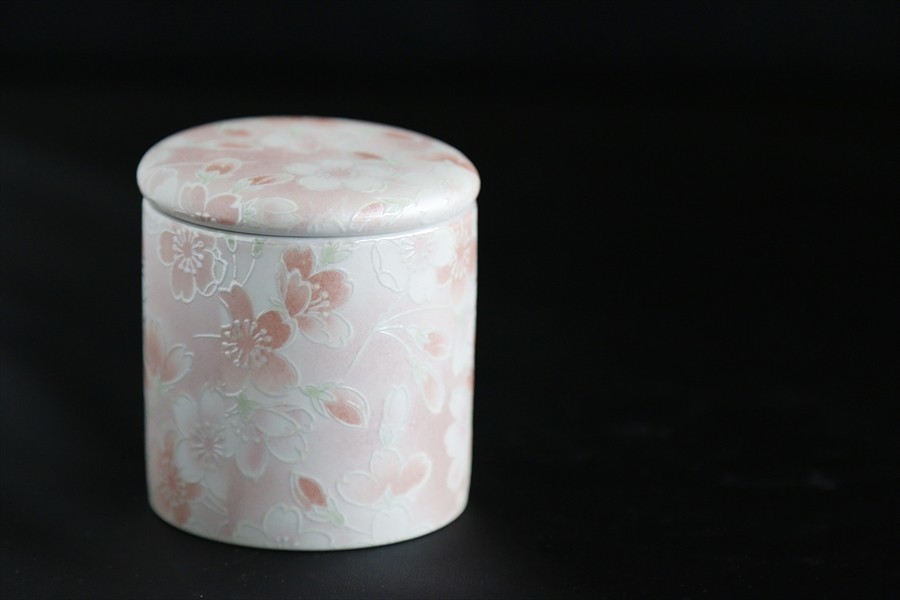 - 国産 仏具■ファンシー骨壺 ミニ 桜 × ピンク■サイズ約 (cm) 高さ6.8cm×幅6.4cm×奥行き6.4cm■モダン 家具調 仏壇