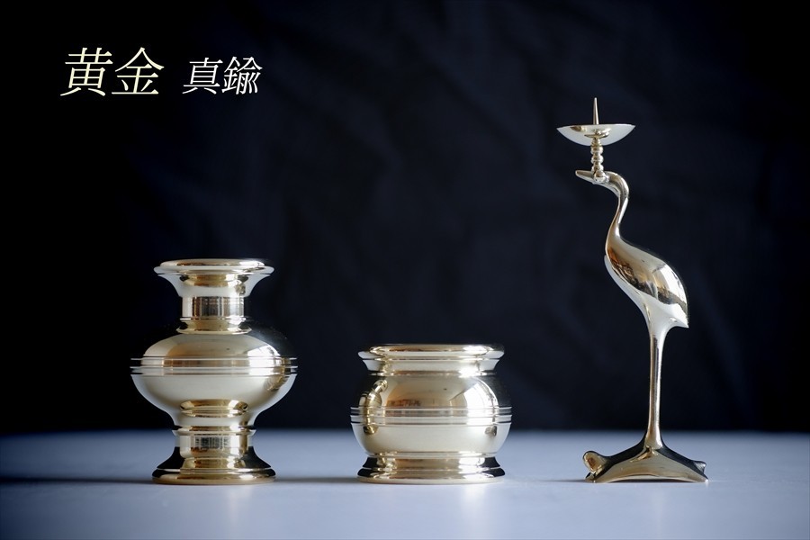 > 浄土真宗 大谷派(お東)専用【3具足】セット■ 高岡製磨き 真鍮 ■ 16号~18号の仏壇に最適 ■ 花立て 香炉 ろうそく立て