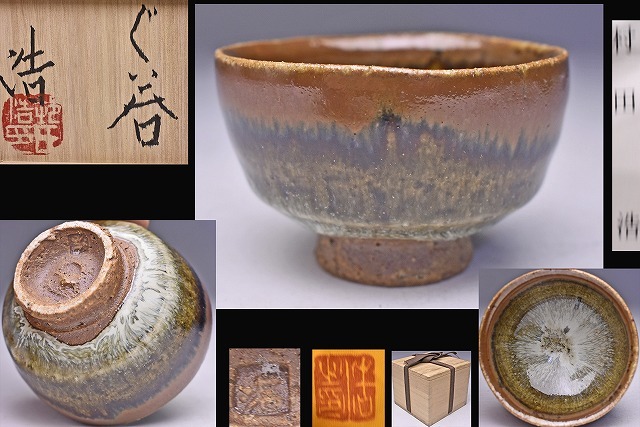 - 村田浩 ★ 鉄釉 窯変 ぐい呑 ★ 共箱 共布 栞 ★ 父:村田元 ★ 小品ながら力強い造形に釉景が見事な逸品 ★ 益子焼 ★ 民芸陶 ★