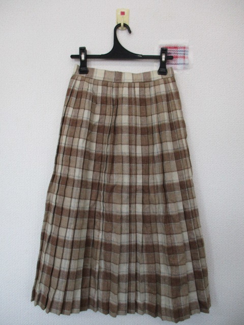 - ★puccele 冬物 プリーツスカート ロング丈 チェック柄 ブラウン系(W60)※難あり