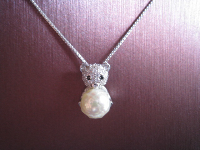 - [SAMU]超可愛い!!小熊 照り抜群あこや真珠7.0mm シルバー925ネックレス★新品!